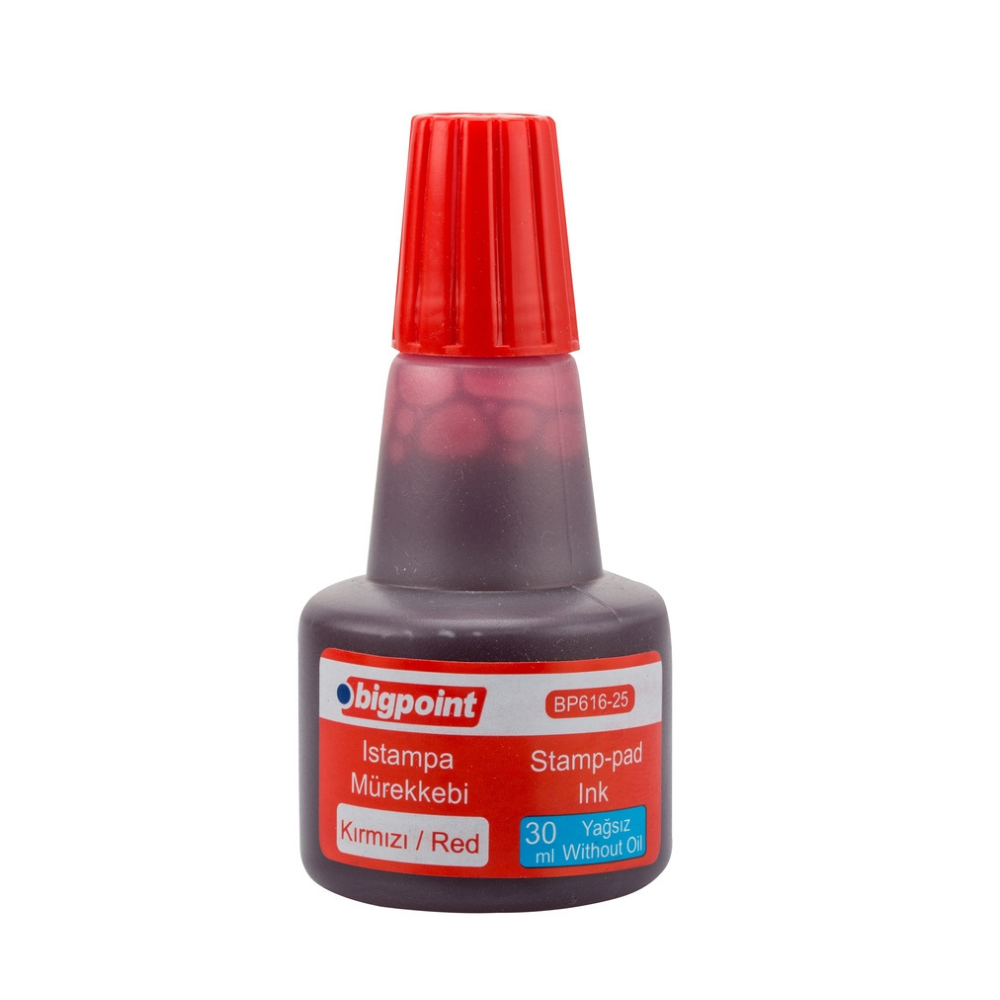 30ml kırmızı renkli ıstampa mürekkebi. Yağsızdır, baskı yapıldıktan sonra zamanla kaybolmaz. Istampa, kaşe ve fiyat etiket makinasının kartuşlarında kullanımı için uygundur.