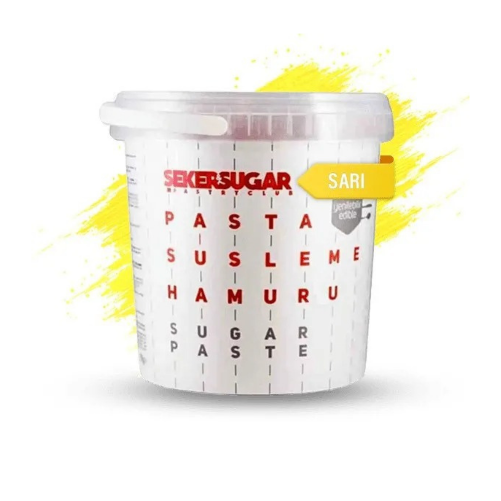 Sarı Şeker Hamuru 1000 grParlak sarı rengiyle neşeli ve göz alıcı pasta tasarımları hazırlayabilirsiniz. Kolay şekil alır ve çatlama yapmaz.