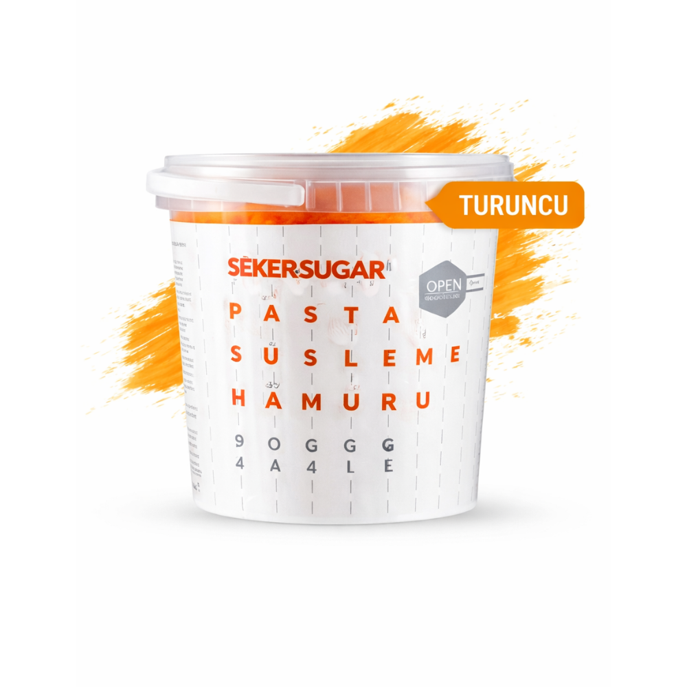 Turuncu Şeker Hamuru 1000 grEnerjik turuncu tonuyla temalı pastalar ve figür çalışmalarında ideal bir seçenektir. Esnek yapısı sayesinde rahat kullanım sunar.