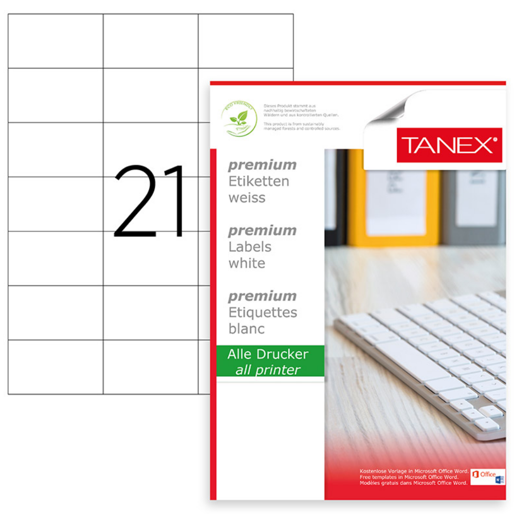 Ana Sayfa Ofis&Kırtasiye Kağıt Grubu Tanex A4 lazer etiket, Standart ölçü 70×42.43 mm
